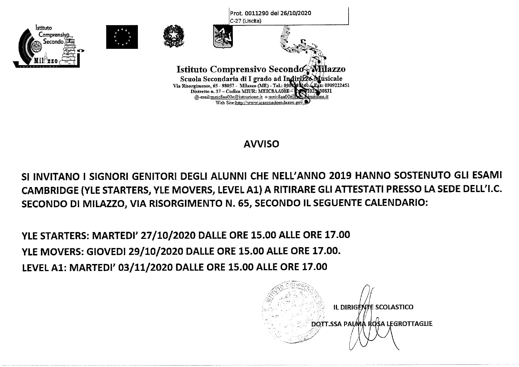 AVVISO ritiro ATTESTATI CAMBRIDGE – IC Secondo Milazzo