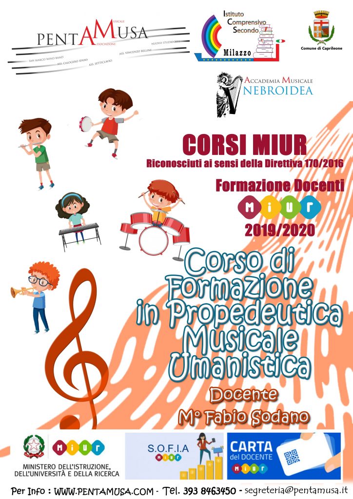 L’Istituto Comprensivo Secondo “Luigi Rizzo” di Milazzo informa che, presso la propria sede, si terrà un Corso di Formazione in Propedeutica Musicale Umanistica, valido ai sensi della direttiva ministeriale 170/2016 avviato dall’Associazione di promozione sociale “Pentamusa”