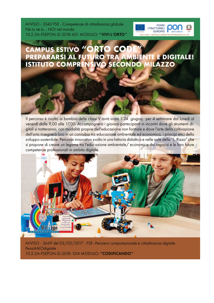” ISCRIZIONI APERTE PER IL CAMPUS ESTIVO 2019 ALLA “L. RIZZO” RIVOLTO AGLI ALUNNI DELLE CLASSI V DEI PLESSI “SACRO CUORE” E “DOMENICO PIRAINO”
